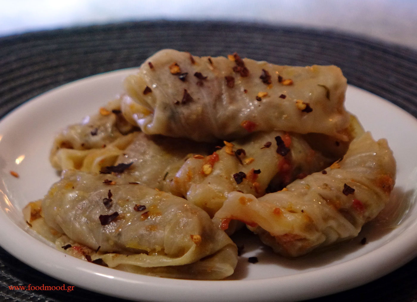 Κόβουμε με ένα μαχαίρι το κοτσάνι από το λάχανο και το βγάζουμε. Βάζουμε το λάχανο σε μια μεγάλη κατσαρόλα με νερό, να βράσει,με την τρύπα προς τα κάτω. Σε 10 λεπτά περίπου, το γυρνάμε ανάποδα για να μαλακώσουν και τα υπόλοιπα φύλλα. Όταν δούμε ότι έχει μαλακώσει, το βρέχουμε με κρύο νερό και χωρίζουμε τα φύλλα για να τα δουλέψουμε. Ψιλοκόβουμε τα μυρωδικά μας. Ανακατεύουμε τον κιμά με το ρύζι και τα μυρωδικά, το αλατοπίπερο και λίγο λάδι και ζυμώνουμε για 2-3 λεπτά. Με ένα μαχαίρι αφαιρούμε το κεντρικό νεύρο από κάθε φύλλο για να τυλιχτεί πιό εύκολα. Άν τα φύλλα μας είναι μεγάλα, τα κόβουμε στη μέση. Βάζουμε σε κάθε φύλλο από μιά κουταλιά γέμιση και το τυλίγουμε σε ρολό. Μπορεί κάποιοι να είναι μεγαλύτεροι και κάποιοι μικρότεροι, ανάλογα με τα φύλλα. Μην ανησυχείτε. Στο τέλος η γεύση είναι που μετράει.