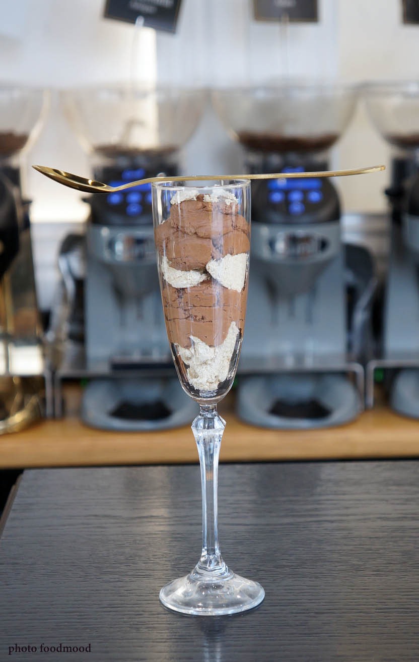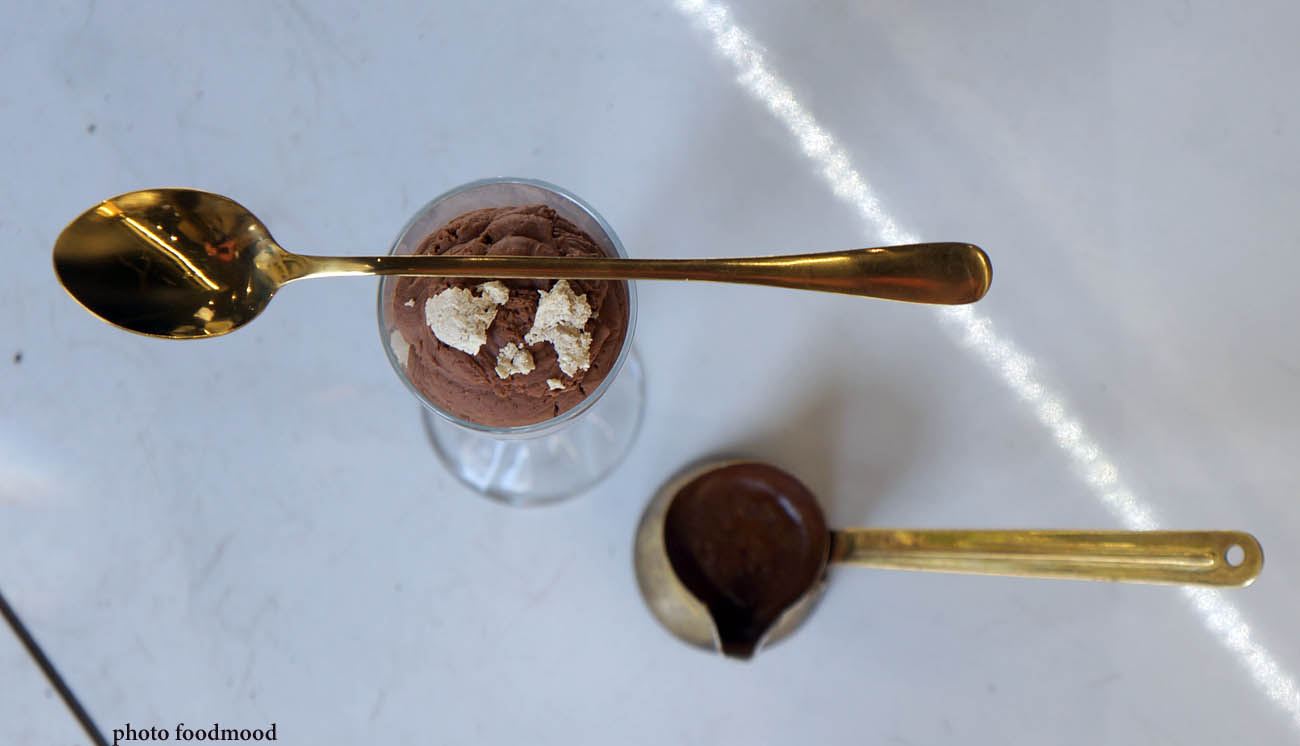 Μους σοκολάτα με ελληνικό καφέ, χαλβά και μαστίχα Χίου