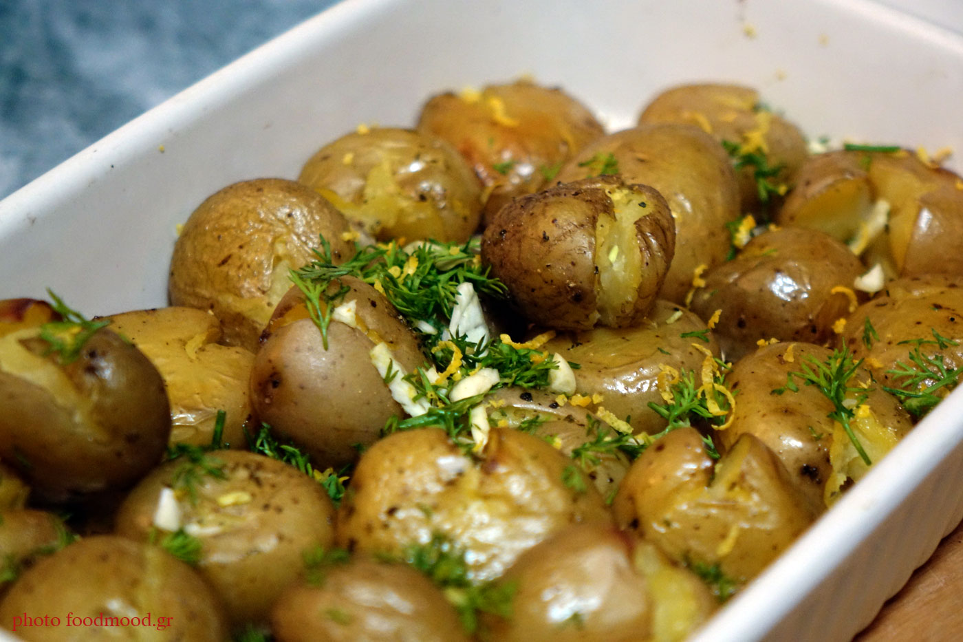 Τις ψήνετε σε προθερμασμένο φούρνο για 30 λεπτά περίπου. 5 λεπτά πρίν τις βγάλετε από το φούρνο πασπαλίζετε με το μείγμα άνιθου, ψιλοκομμένου σκόρδου και ξύσμα λεμονιού.